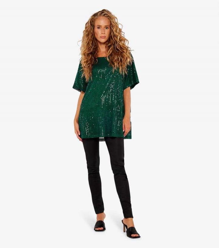 Apricot. Step out in style this season in this green top, designed with all-over sequins that are perfect for parties and events. Just add leather-look trousers and a medley of gold jewellery.