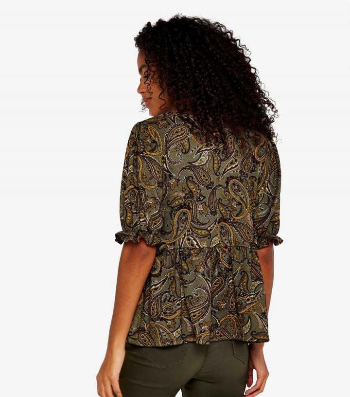 Tops | New Look Womens Apricot Olive Paisley Print Puff Sleeve Top