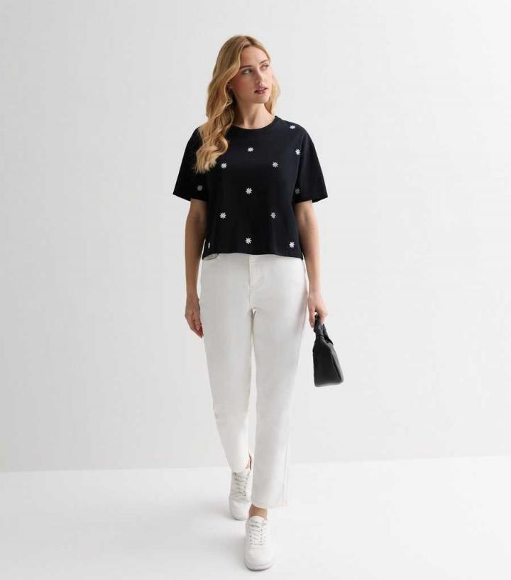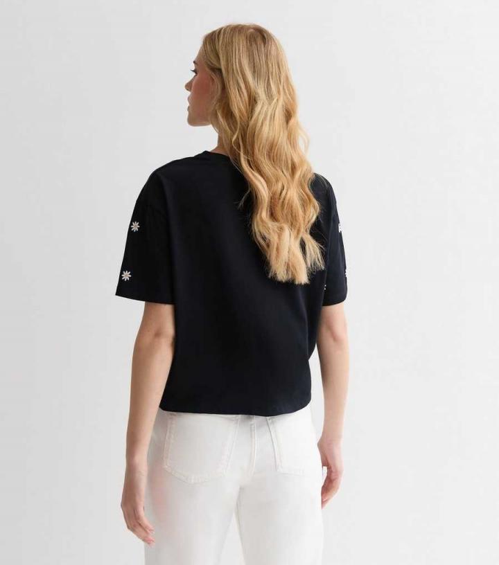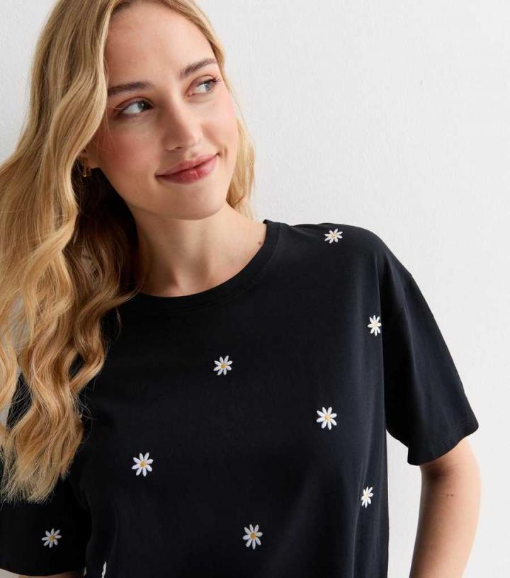 Tops | New Look Womens Black Cotton Daisy Embroidered Boxy T-Shirt
