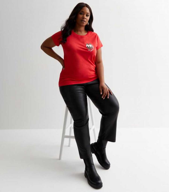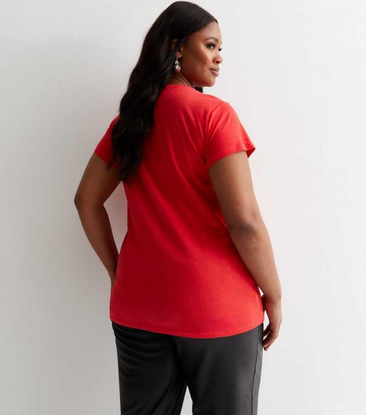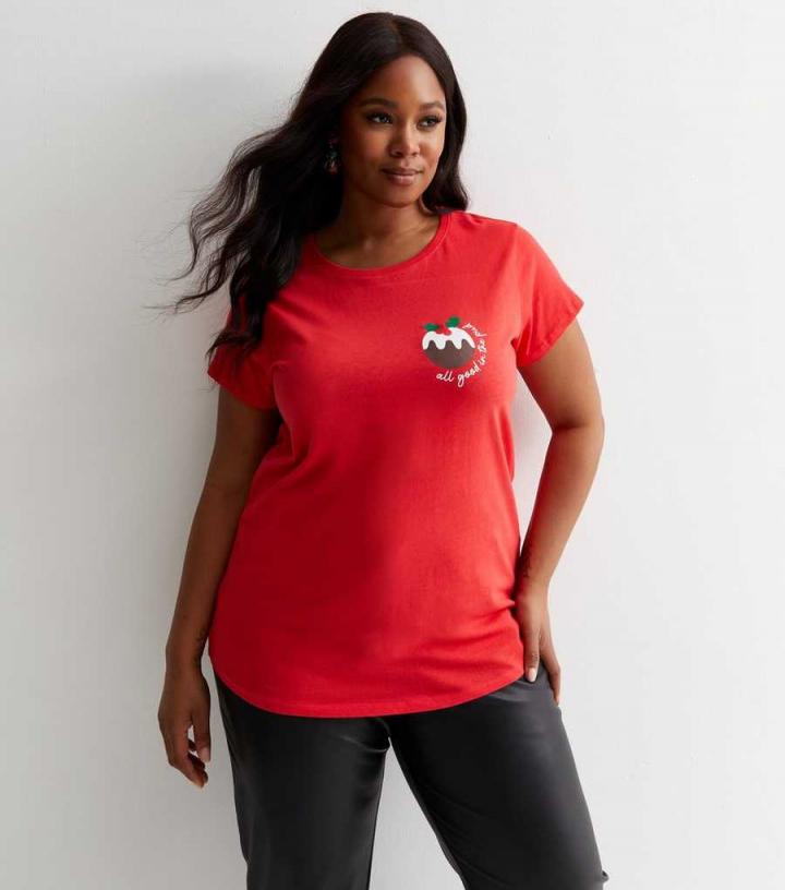 Curves. Add festive cheer to your wardrobe with this red logo T-shirt. Pair it with joggers and slippers for cosy days at home.