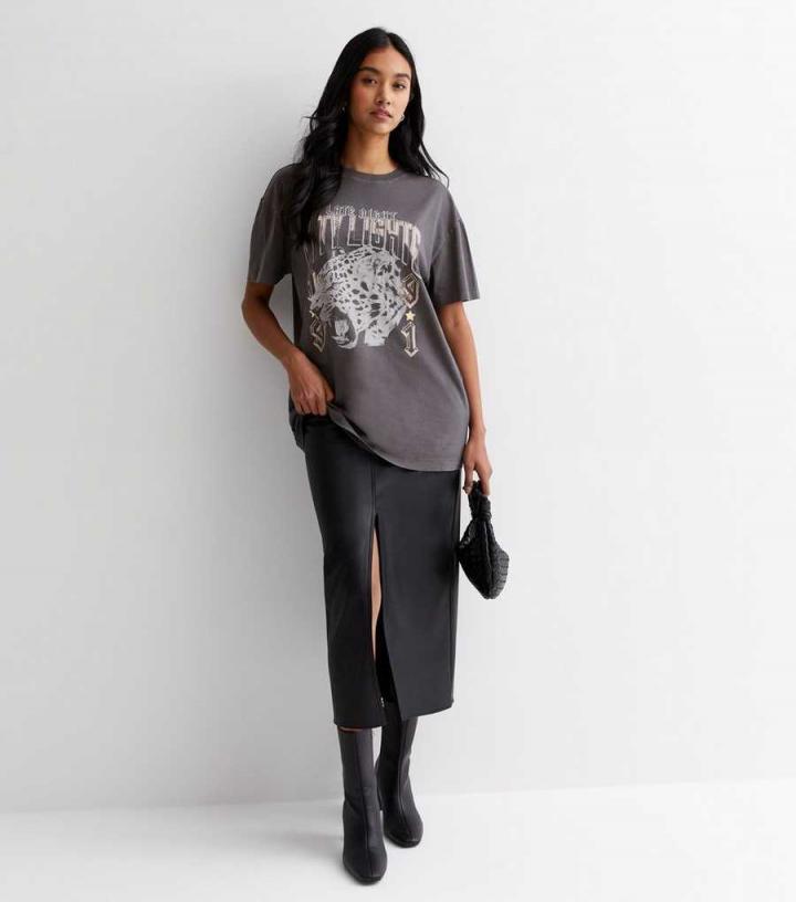 Add a grunge vibe to your everyday with this grey T-shirt, boasting an acid wash finish and statement tiger print.