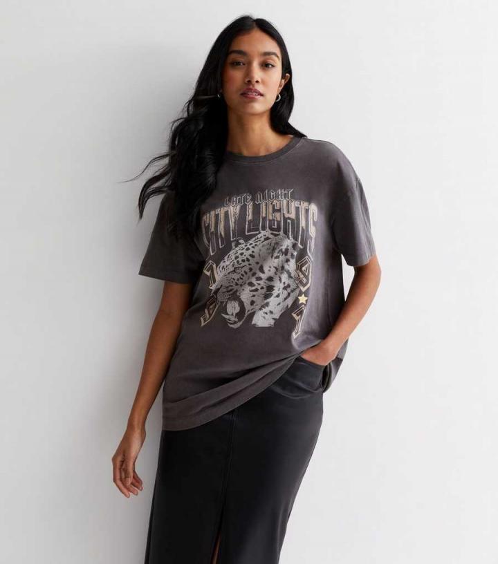 – ‘City lights’ logo- Tiger print- Ribbed crew neckline- Short sleeves- Acid wash- Soft cotton fabric- Relaxed fit- Model is 5’8"/173cm and wears UK 10/EU 38/US 6