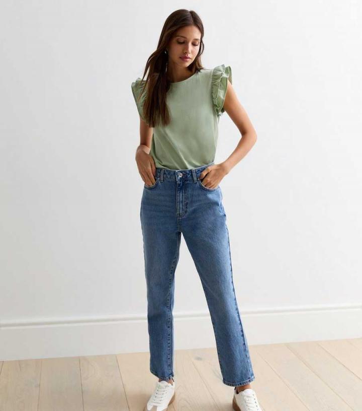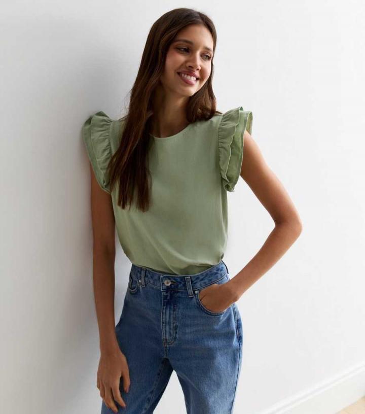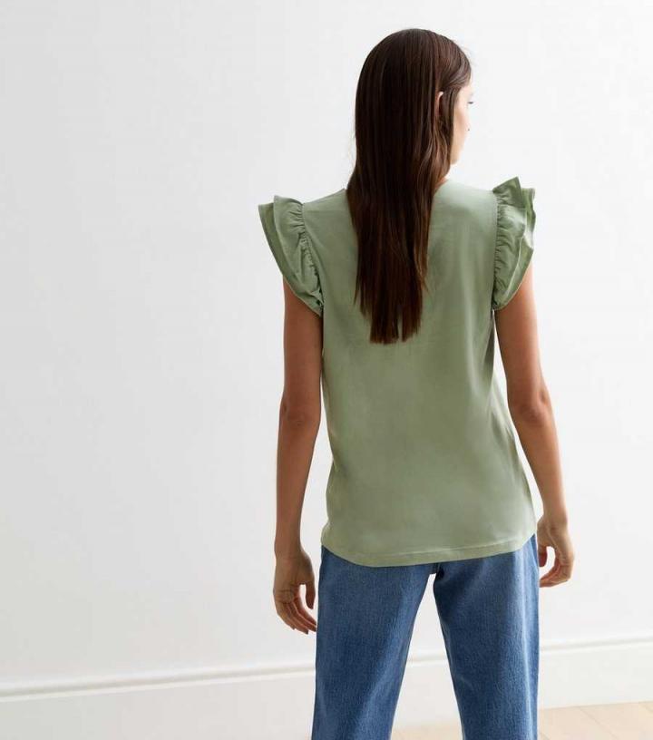 Tops | New Look Womens Khaki Cotton Frill Sleeve Top
