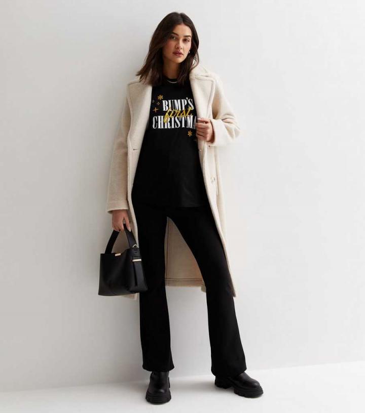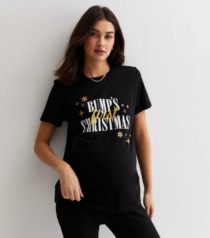Maternity. Celebrate your baby bump in style this Christmas in this black logo T-shirt. Made from a soft cotton fabric, it’ll keep you comfy throughout the festive season.