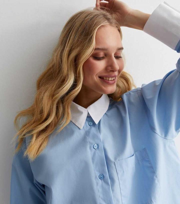 – Collared neckline- Long cuffed sleeves- Single pocket- Contrast collar and cuffs- Button-up fastening- Soft cotton fabric- Relaxed fit- Model is 5’8"/173cm and wears UK 10/EU 38/US 6