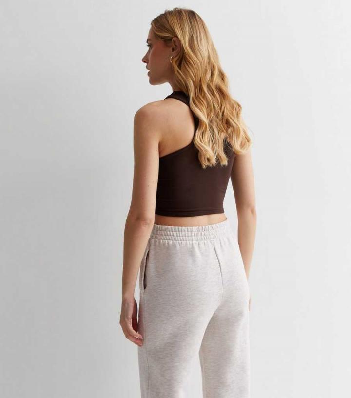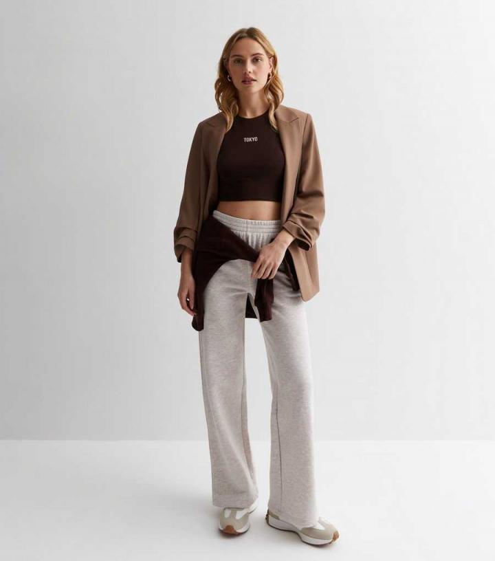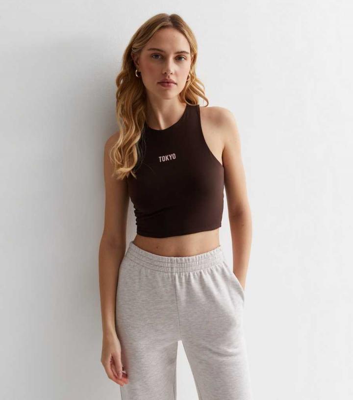 – Brown/light pink – ‘Tokyo’ text print- Round neck- Sleeveless – Racer back- Straight hem- Cropped