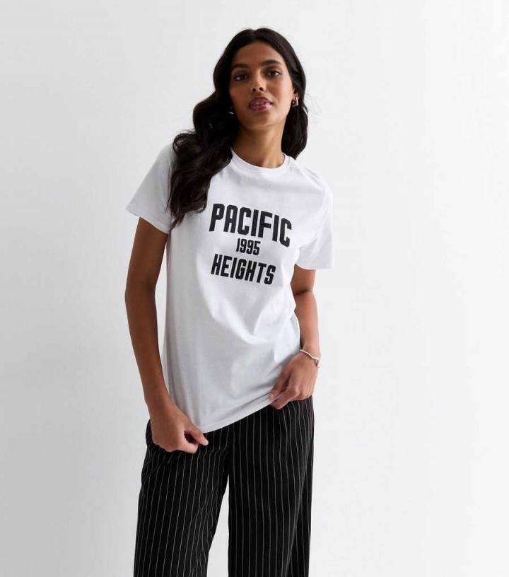 – White/black- ‘Pacific Heights’ logo- Crew neckline- Short sleeves- Cotton fabric- Model is 5’7"/171cm and wears UK 10/EU 38/US 6