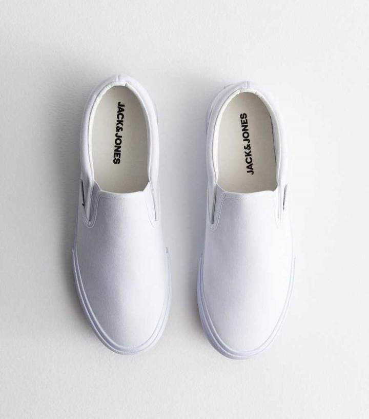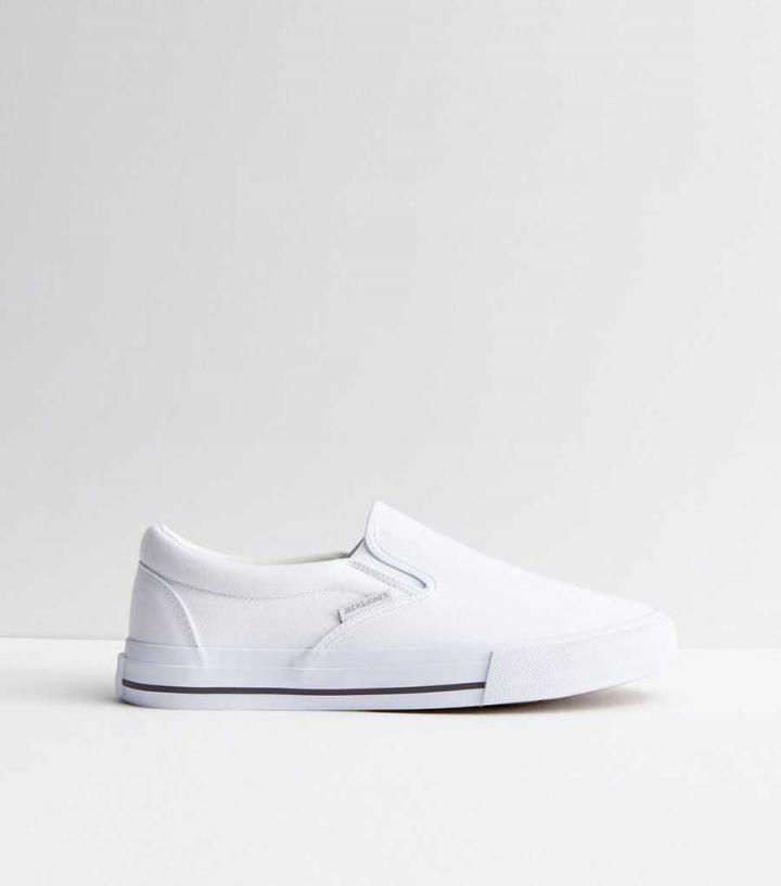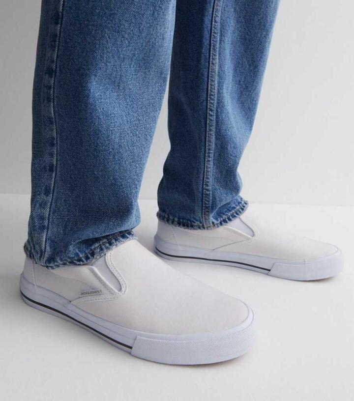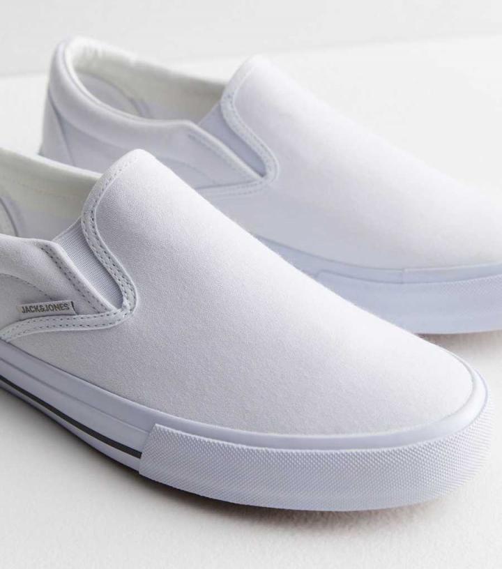 Mens Jack & Jones White Canvas Slip On Trainers New Look…