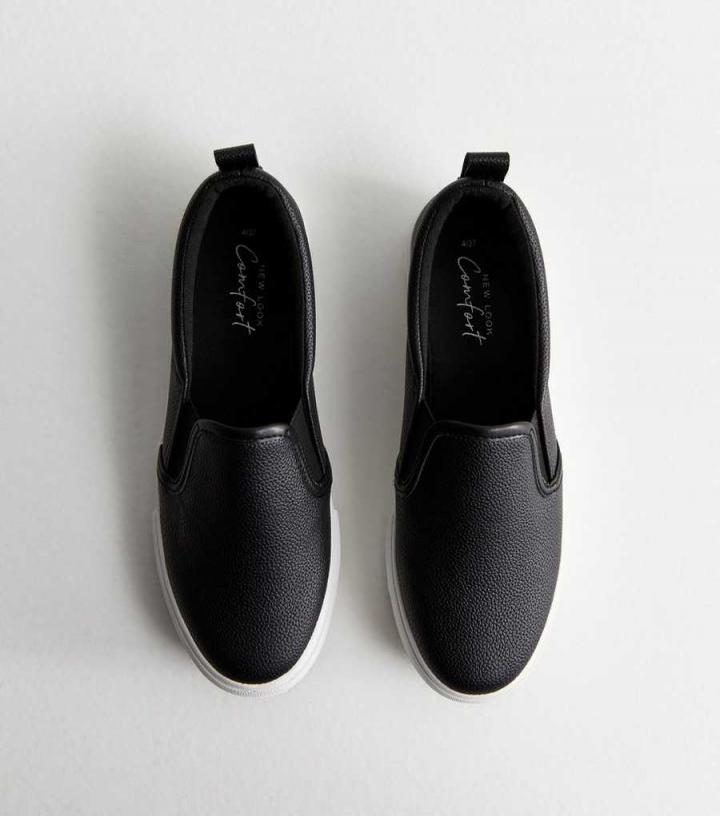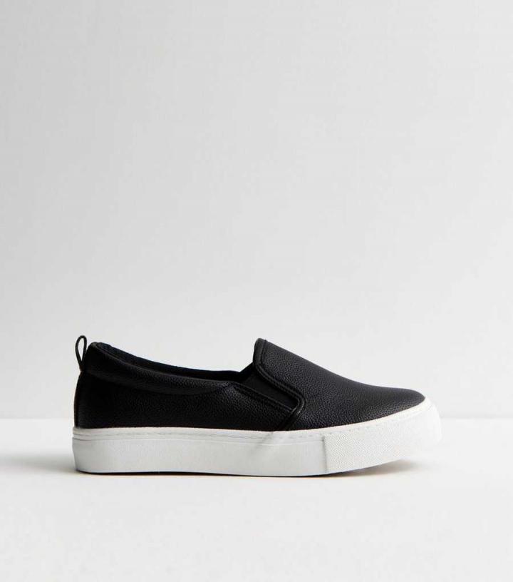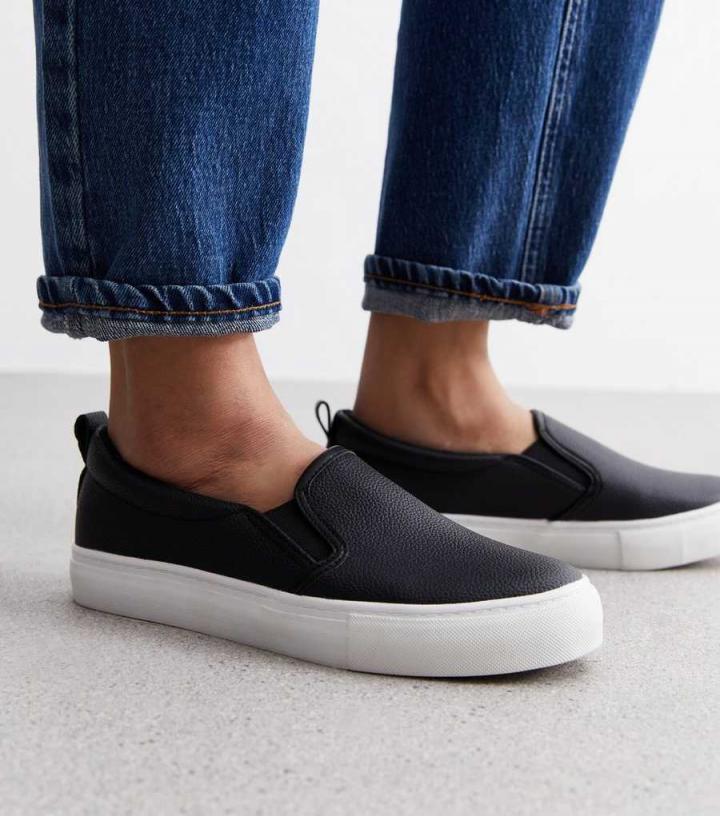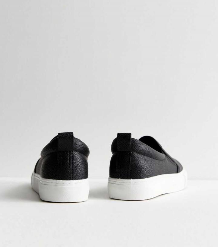 Boasting a luxe leather-look finish and effortless slip-on design, these black trainers will see you through the seasons.