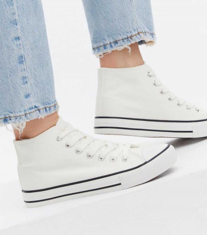 Trainers | New Look Womens|Girls White Canvas High Top Trainers