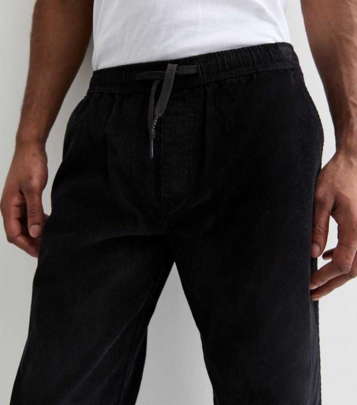 Mens Black Cotton Cord Relaxed Fit Trousers New Look…