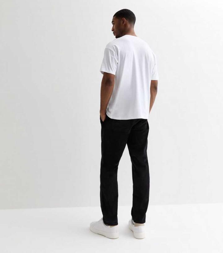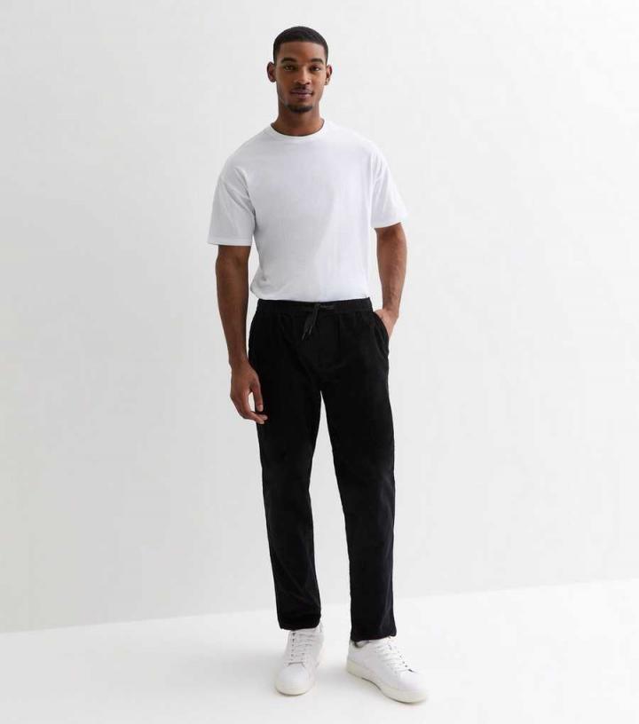 Mens Black Cotton Cord Relaxed Fit Trousers New Look