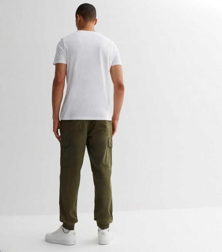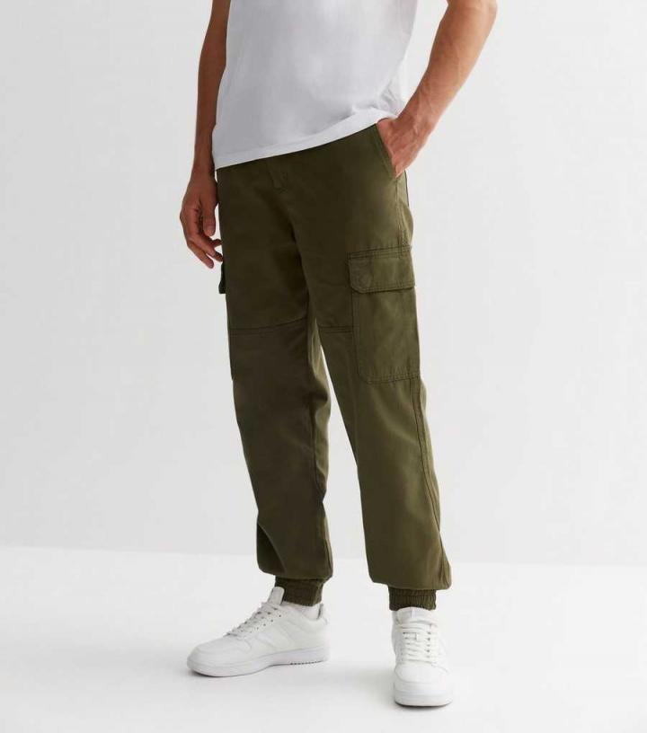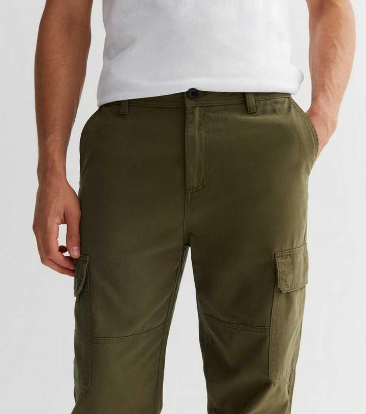 Mens Khaki Cotton Relaxed Fit Cuffed Crop Cargo Trousers New Look…