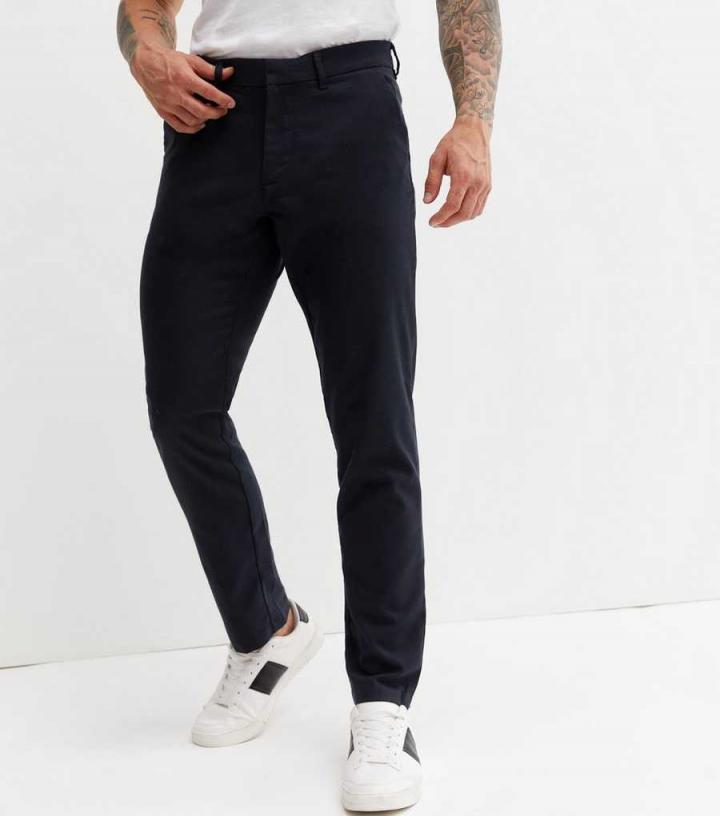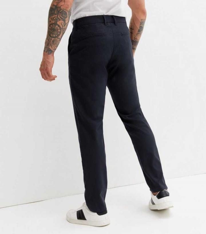 Mens Navy Mid Rise Slim Suit Trousers New Look…