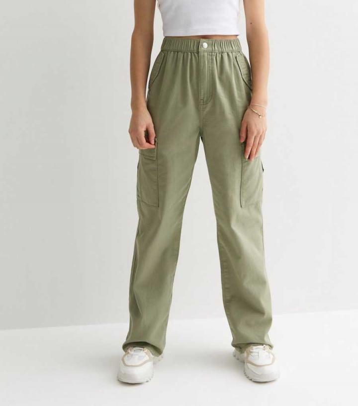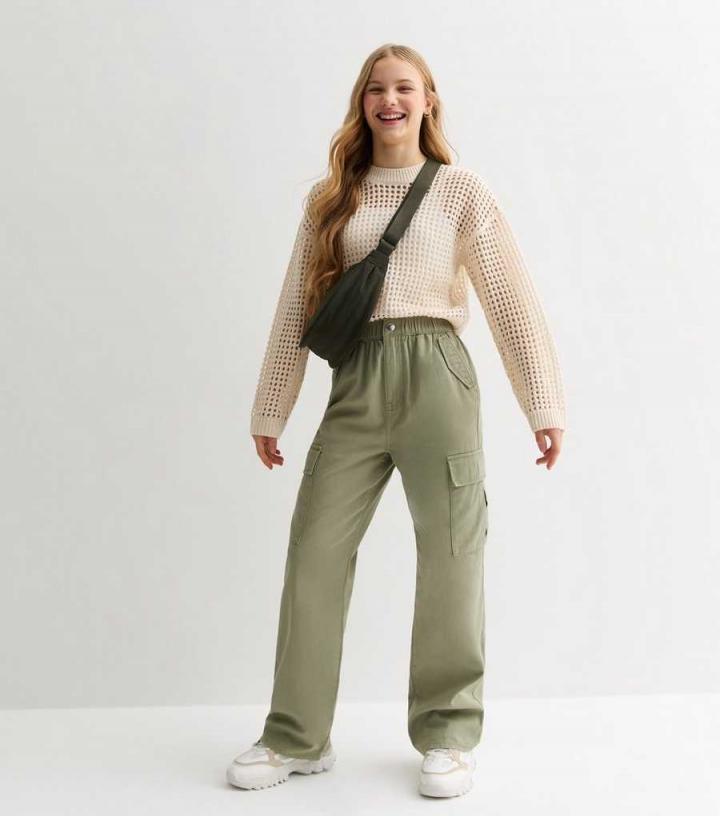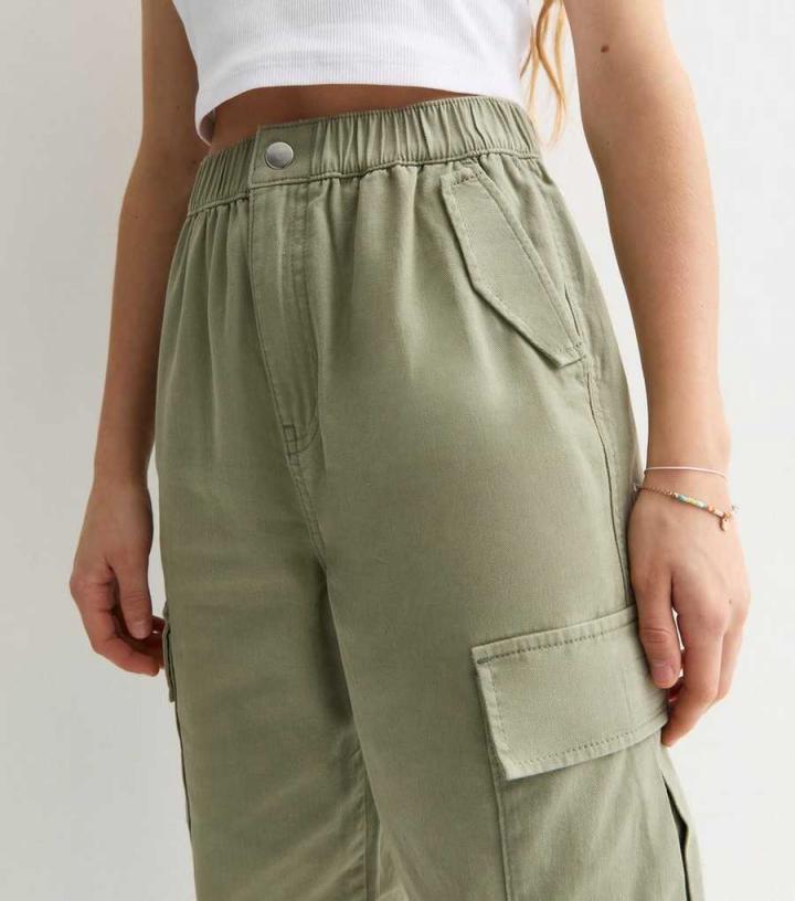 GirlsKhaki Wide Leg Cotton Cargo Trousers New Look