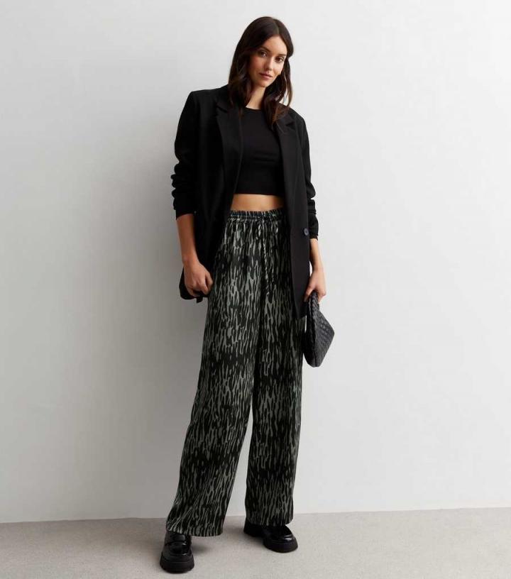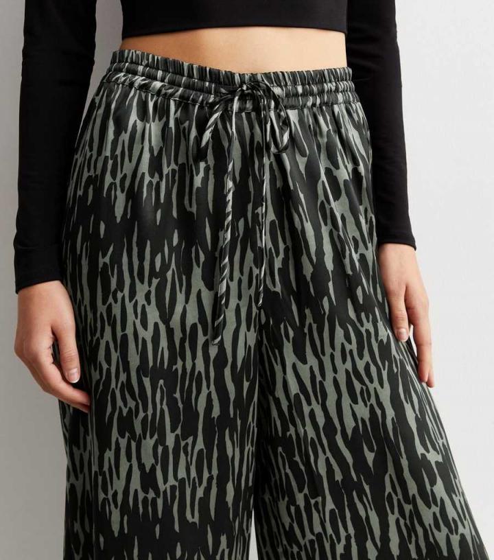 Trousers | New Look Womens Black Abstract Print Satin Wide Leg Trousers