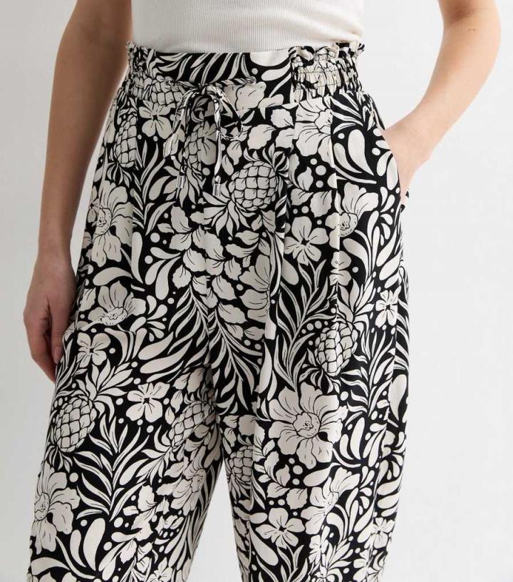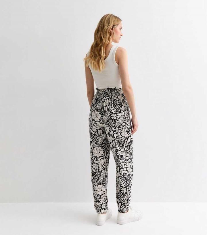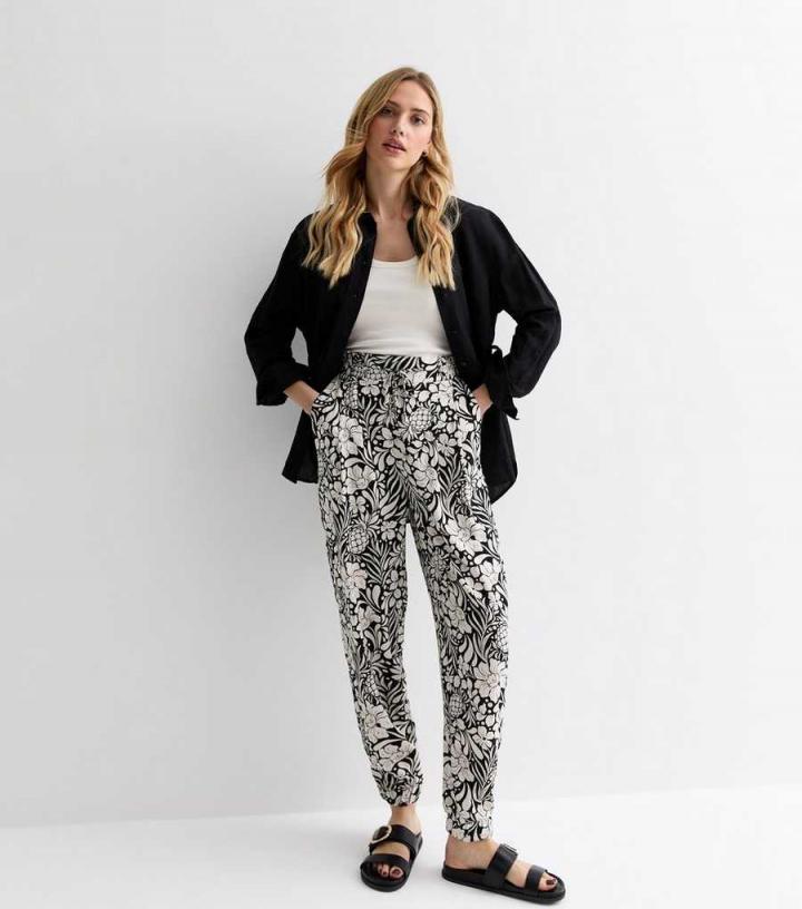 Trousers | New Look Womens Black Floral Drawstring Waist Cuffed Joggers