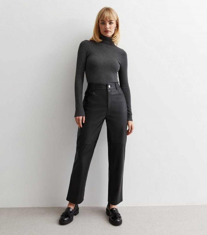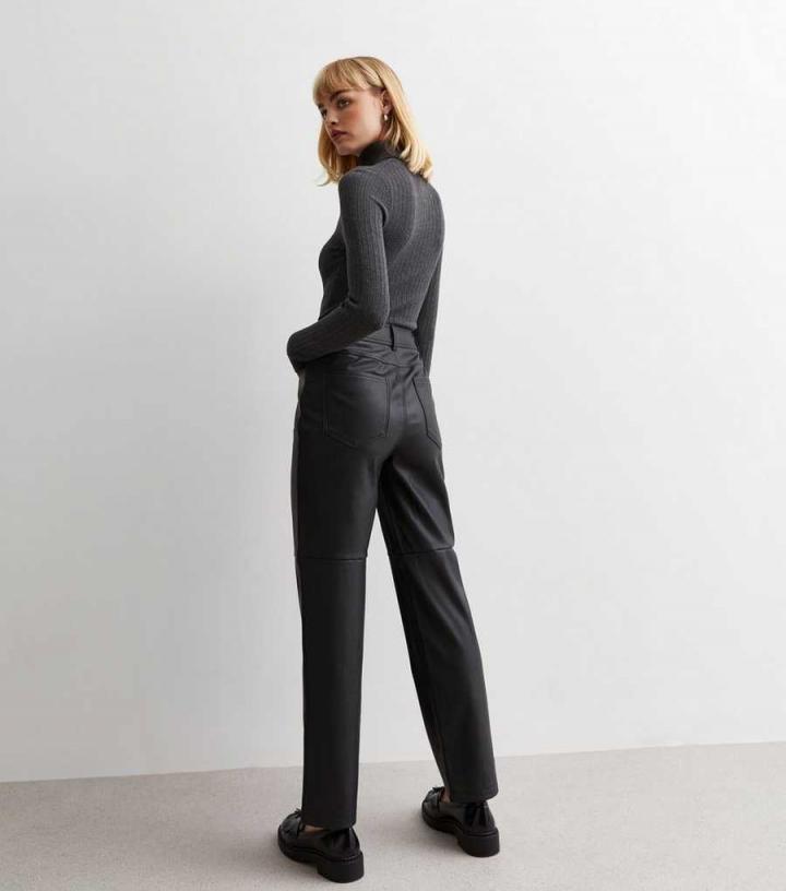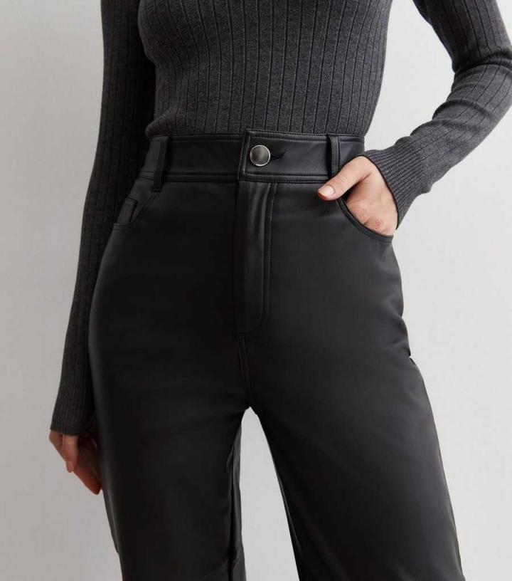 Trousers | New Look Womens Black Leather-Look Straight Leg Trousers