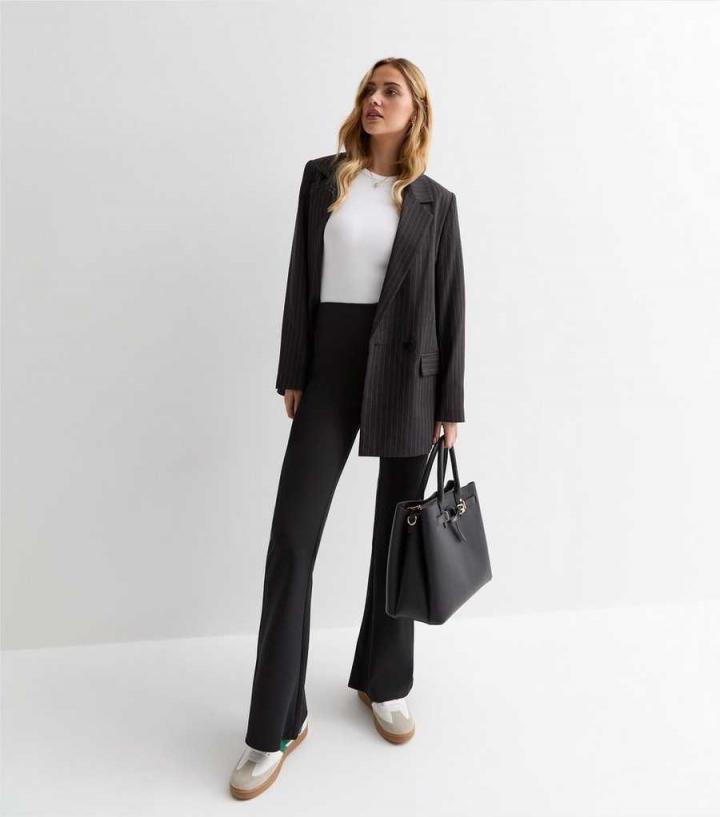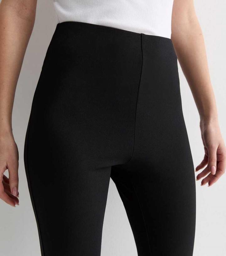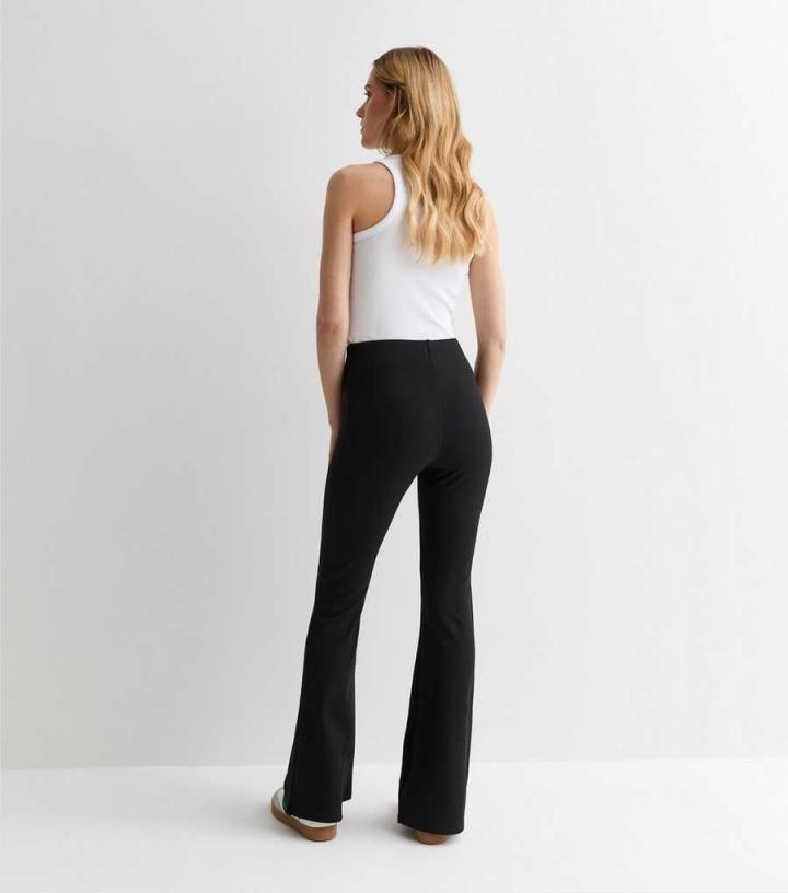 – Black- Elasticated high waist- Flared leg- Scuba crepe fabric- Slim fit- Model is 5’8"/173cm and wears UK 10/EU 38/US 6