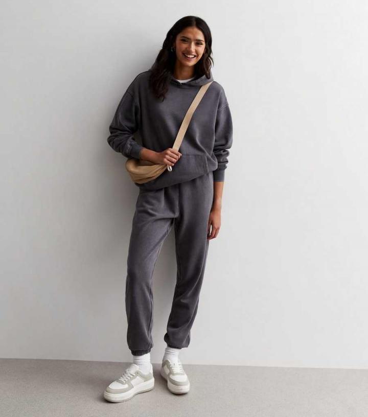 Trousers | New Look Womens Dark Grey Acid Wash Cuffed Joggers