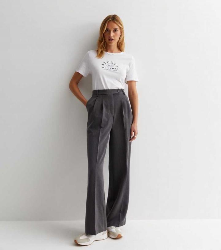From their soft finish to their wide leg design, these grey trousers are a comfy staple. Whether for work or weekend, pair with a simple T-shirt and trainers for an effortlessly stylish fit.