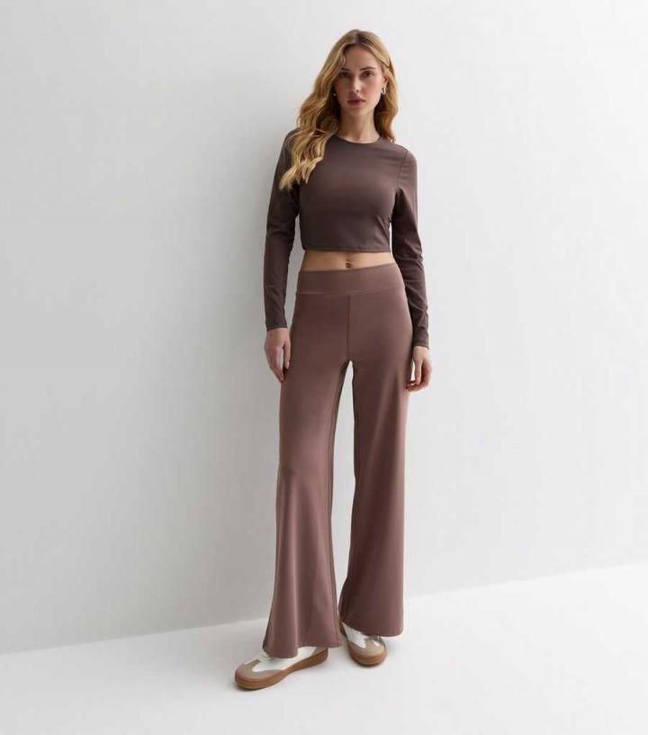 Comfy and stylish in equal measure, these mink brown wide leg trousers are designed in a stretchy jersey fabric. Team with a graphic tee and chunky trainers for the perfect off-duty fit.