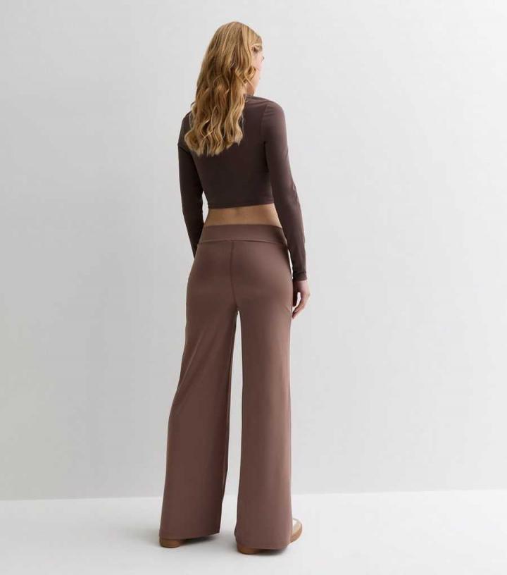 – Mink brown- High waist- Wide leg- Soft jersey fabric- Regular fit- Model is 5’8"/173cm and wears UK 10/EU 38/US 6