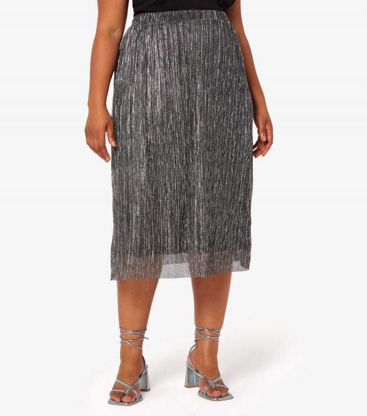 Apricot Curves. Make a statement in this pale grey midi skirt. Crafted from a gorgeous plissé fabric, it looks fab with a cowl neck cami or blouse and metallic heels.