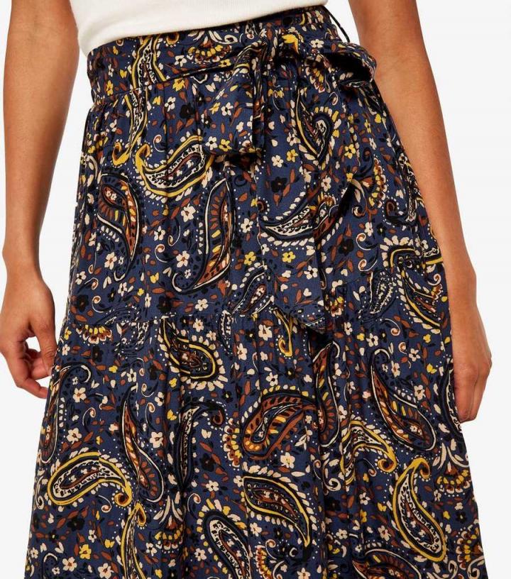 – Paisley print- High waist- Tiered skirt- Midaxi length- Soft woven fabric- A-line fit- Model is 5’8"/173cm and wears UK 10/EU 38/US 6