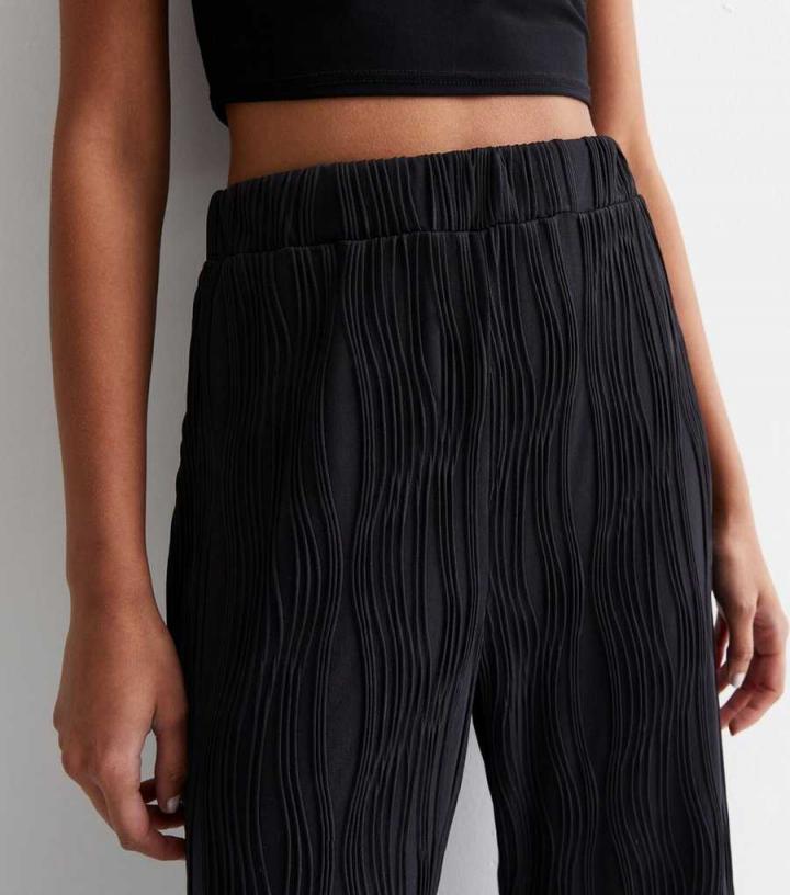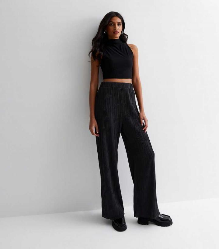 Looking for something comfy and on-trend? These black cargo trousers are a wardrobe must-have. Crafted from a soft ripple fabric and designed in a wide leg style, they look great with racerback vests and cropped camis.