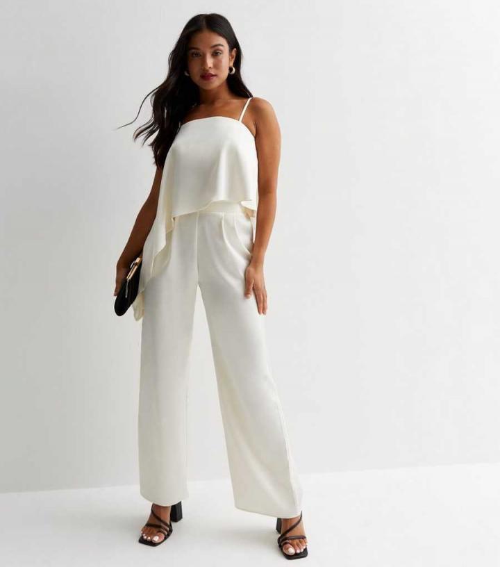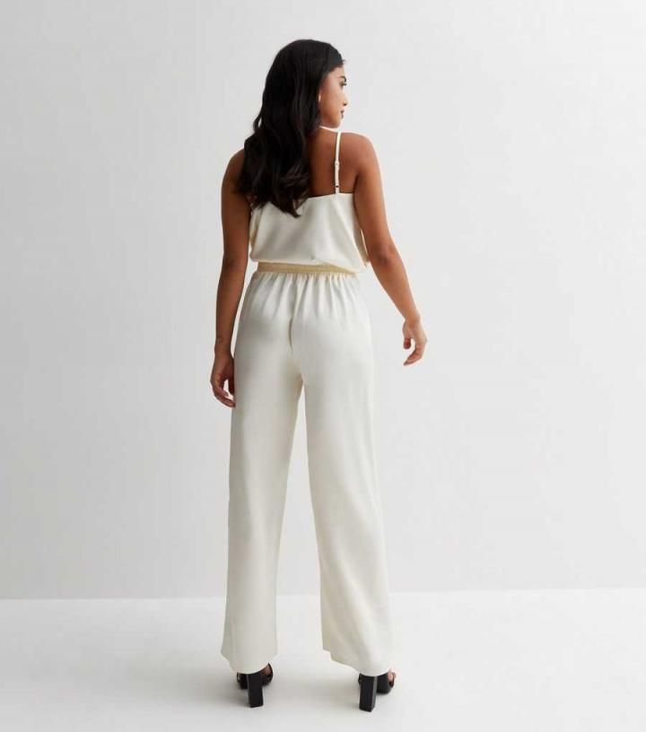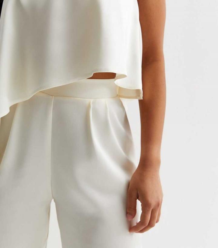 Trousers, Skirts & Shorts | New Look Womens Petite Cream Satin Wide Leg Tailored Trousers