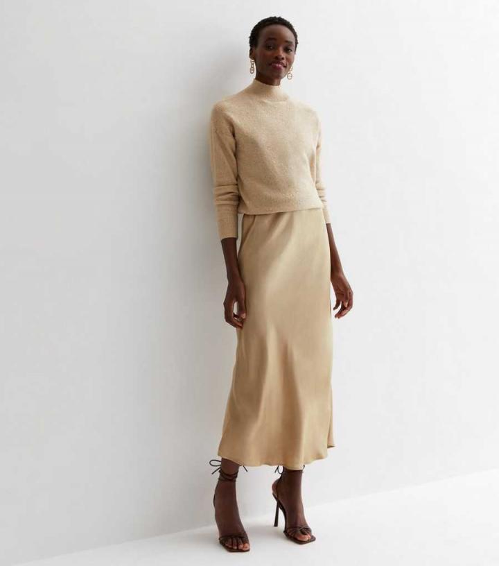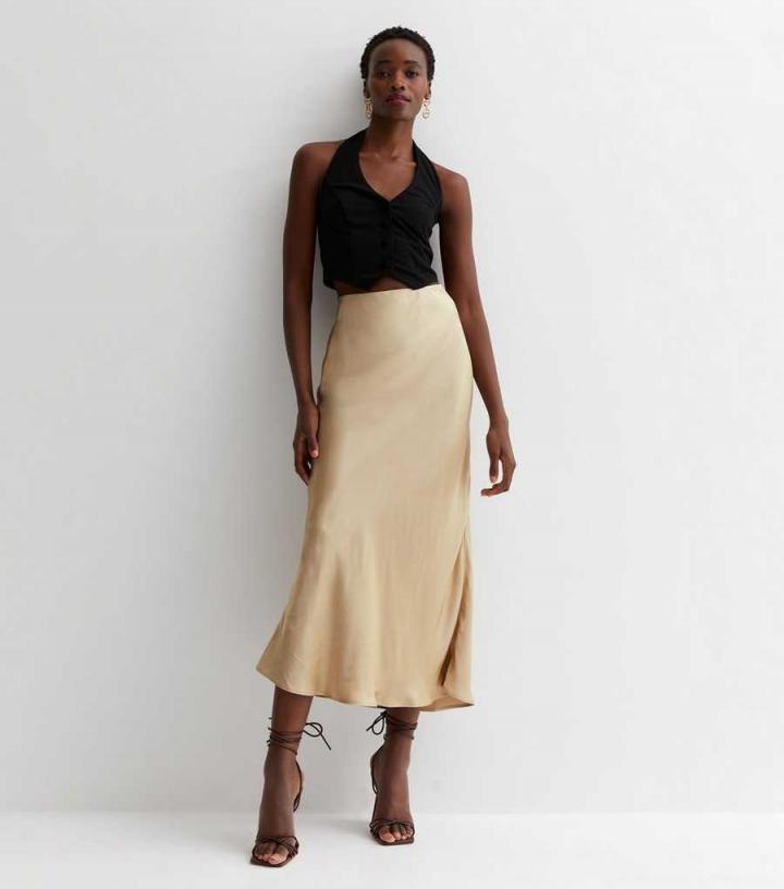 Tall. Designed in a party-ready colourway in shimmering satin fabric, this gold midaxi skirt was made for the festive season. Team it with a crop top and strappy heels for the ultimate glam look.