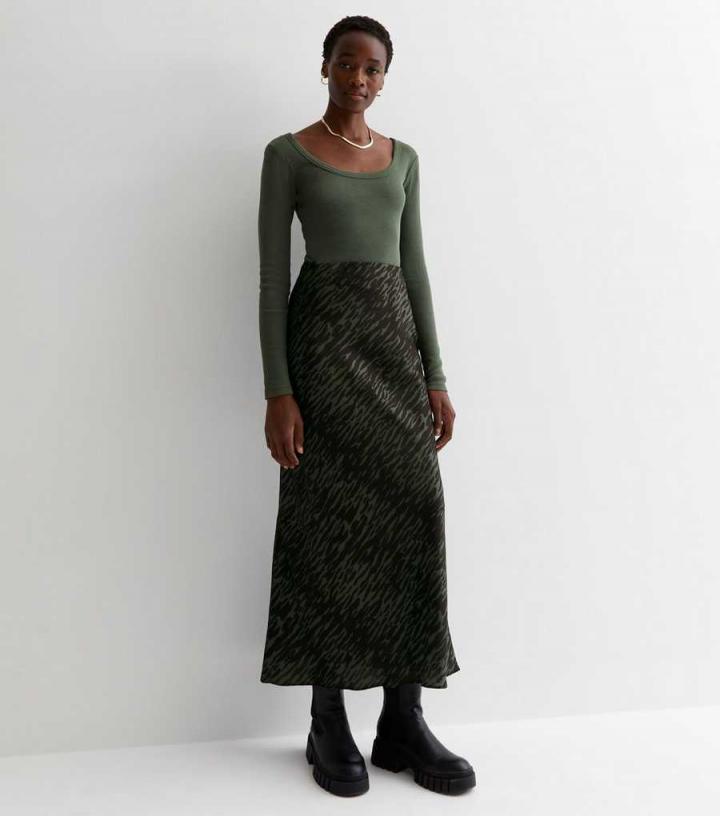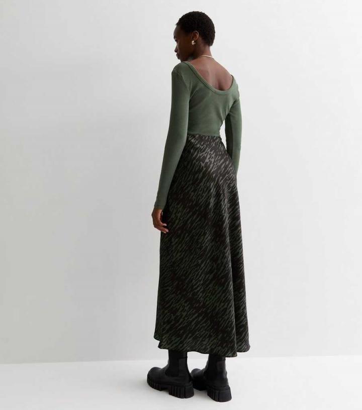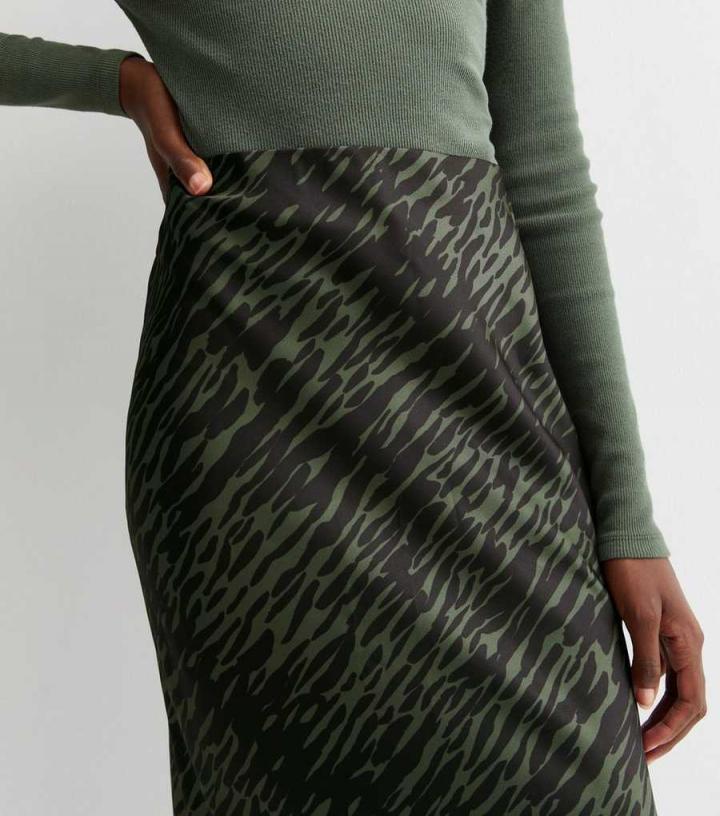 Tall. Decorated with a classic animal print, this green midi skirt was made for autumn. Pair it with chunky knits and loafers by day, then bodysuits and heeled boots by night.