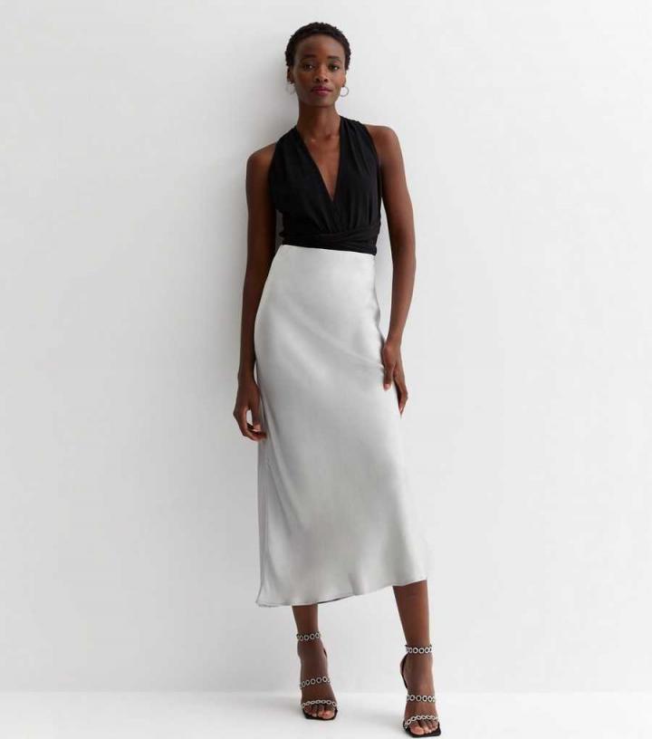 Tall. Designed in a party-ready colourway in shimmering satin fabric, this silver midaxi skirt was made for the festive season. Team it with a crop top and strappy heels for the ultimat…