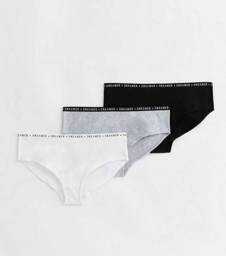 Underwear | New Look Girls 3 Pack Black Grey and White Cotton Logo Briefs