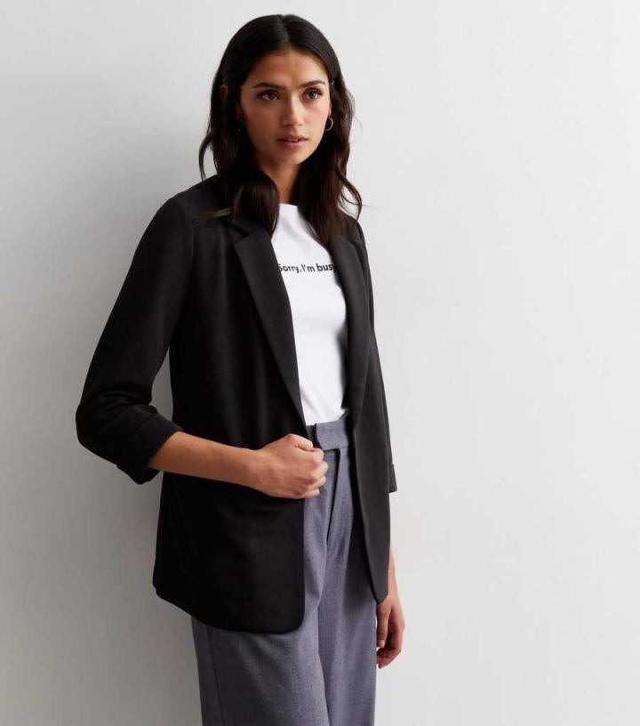 Blazers | New Look Womens Black Ruched Sleeve Blazer