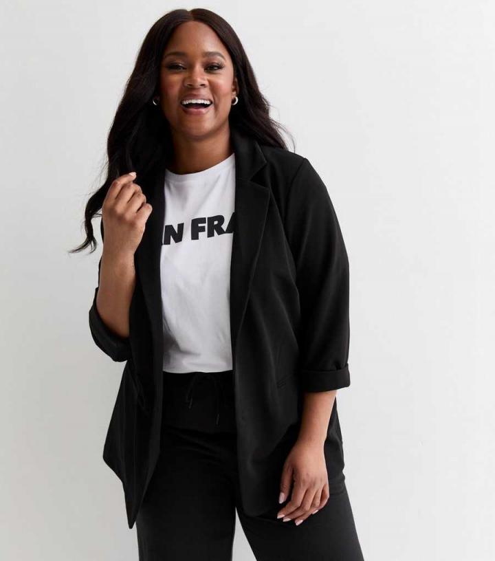 Blazers | New Look Womens Curves Black Ribbed Blazer
