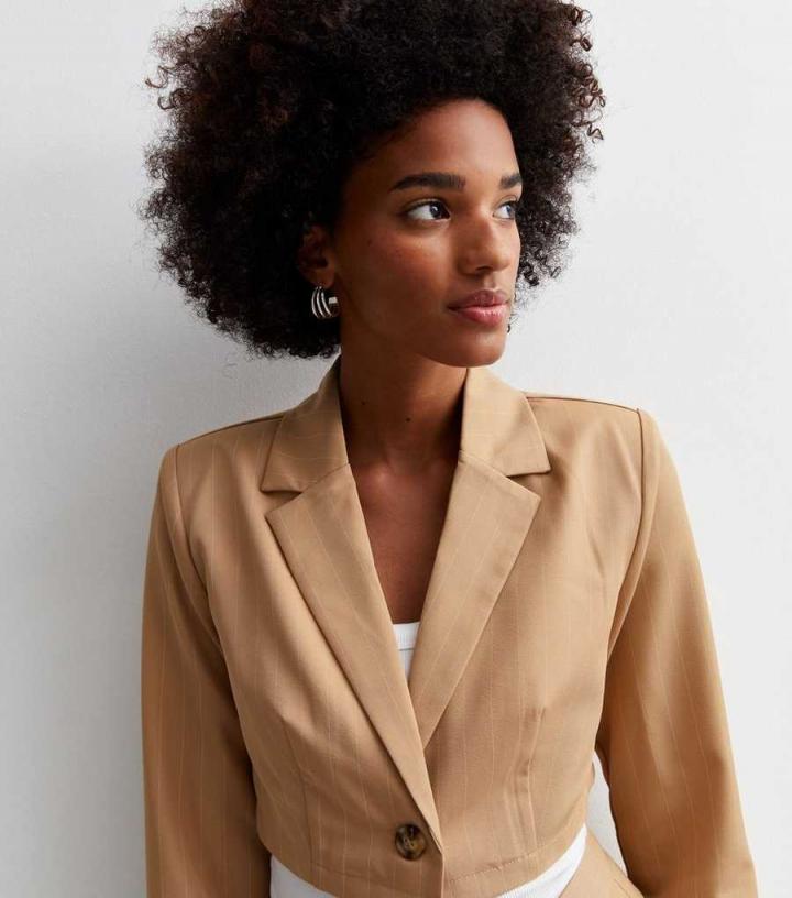 Blazers | New Look Womens Pink Vanilla Stone Pinstripe Crop Blazer