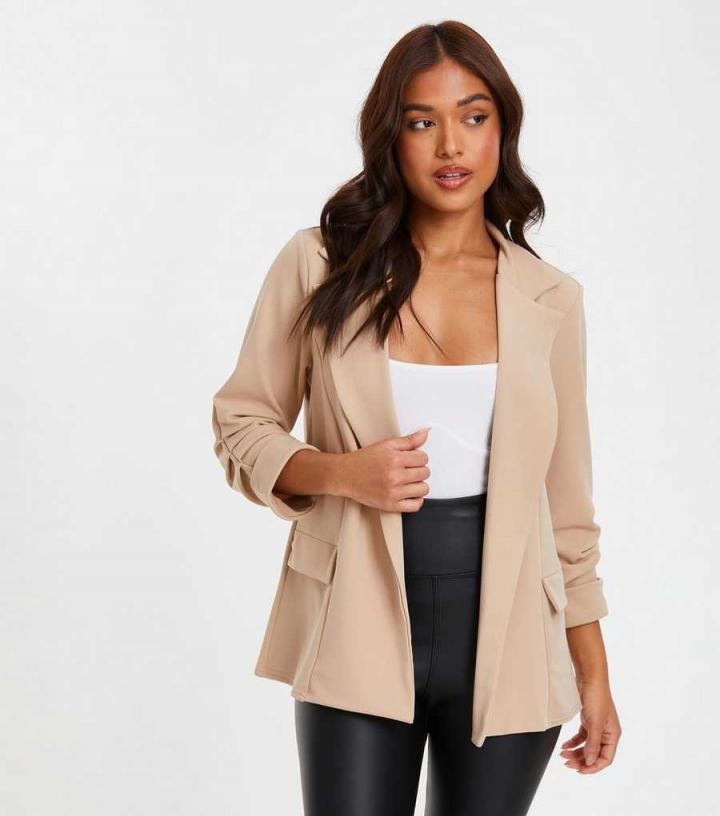 Blazers | New Look Womens QUIZ Petite Stone Scuba Crepe Ruched Sleeve Blazer