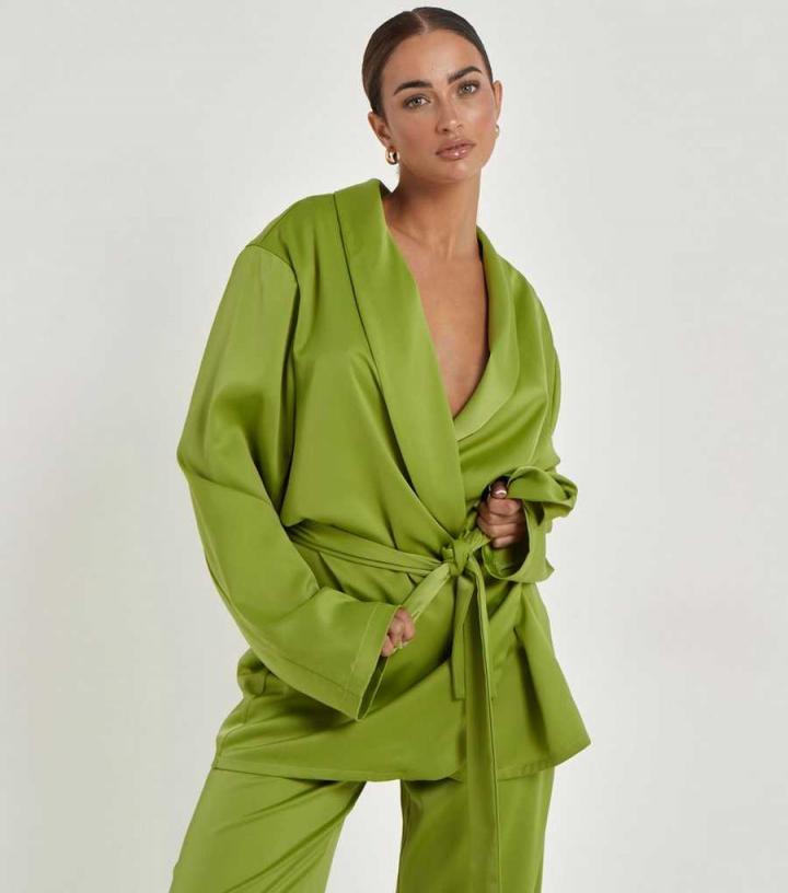 Blazers | New Look Womens Urban Bliss Green Satin Wrap Blazer