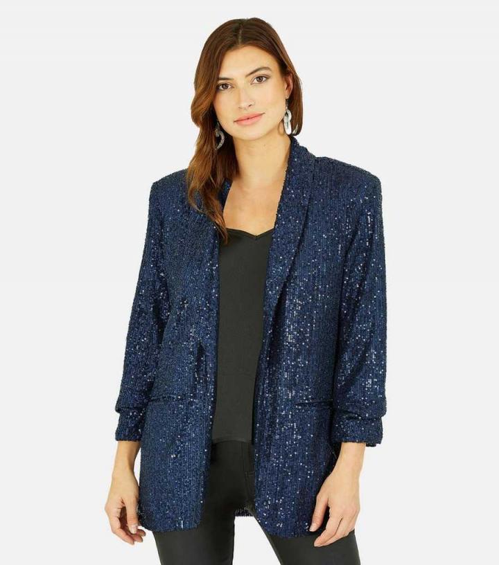 Blazers | New Look Womens Yumi Navy Sequin Blazer