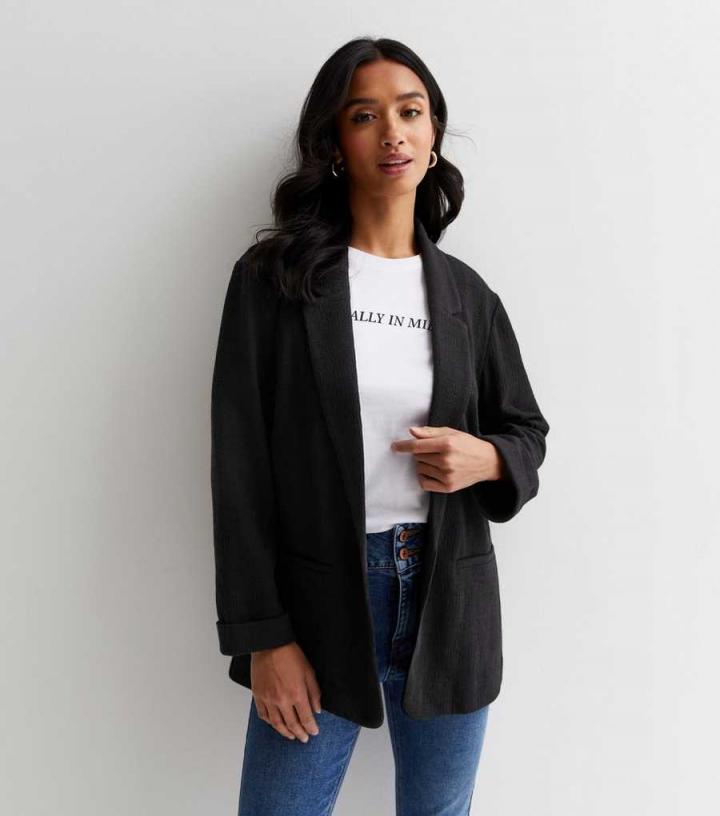Coats & Jackets | New Look Womens Petite Black Textured Stretch Jersey Blazer
