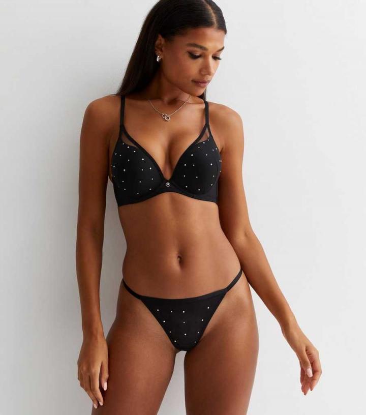 Co-ords | New Look Womens Black Mesh Diamanté Thong