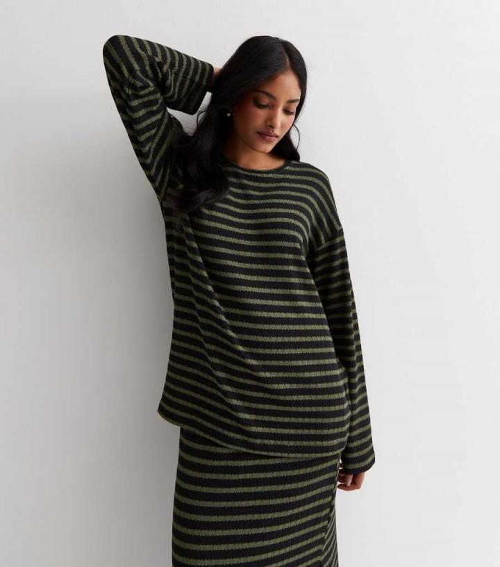 Co-ords | New Look Womens Green Stripe Textured Knit Long Sleeve Top