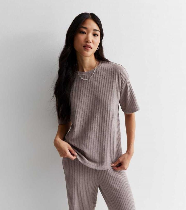 Co-ords | New Look Womens Mink Ribbed Knit T-Shirt
