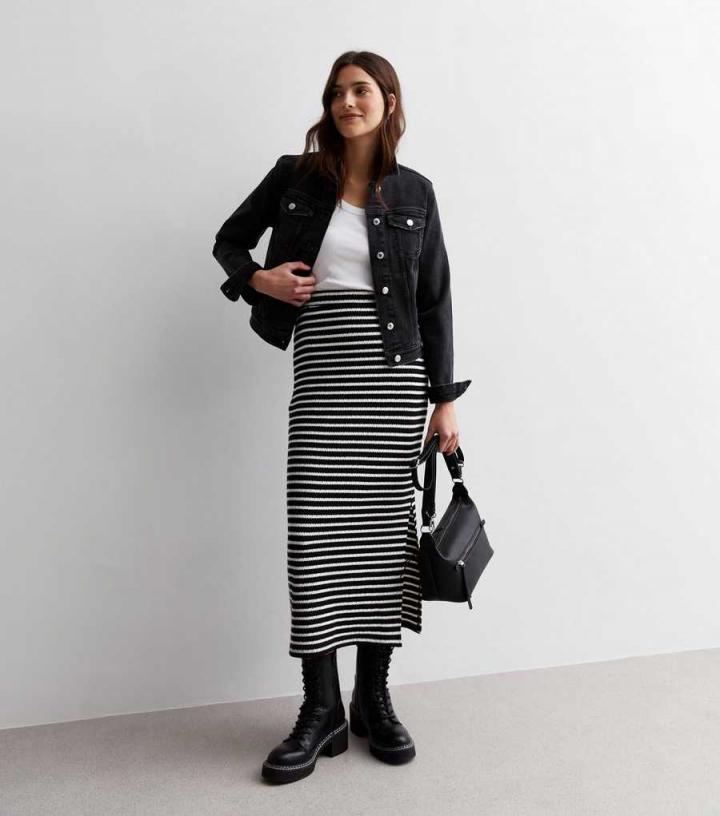 Skirts | New Look Womens Black Stripe Textured Split Hem Midi Skirt