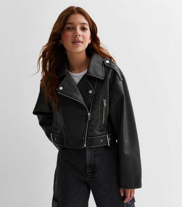 Coats & Jackets | New Look Girls Dark Grey Washed Leather-Look Jacket