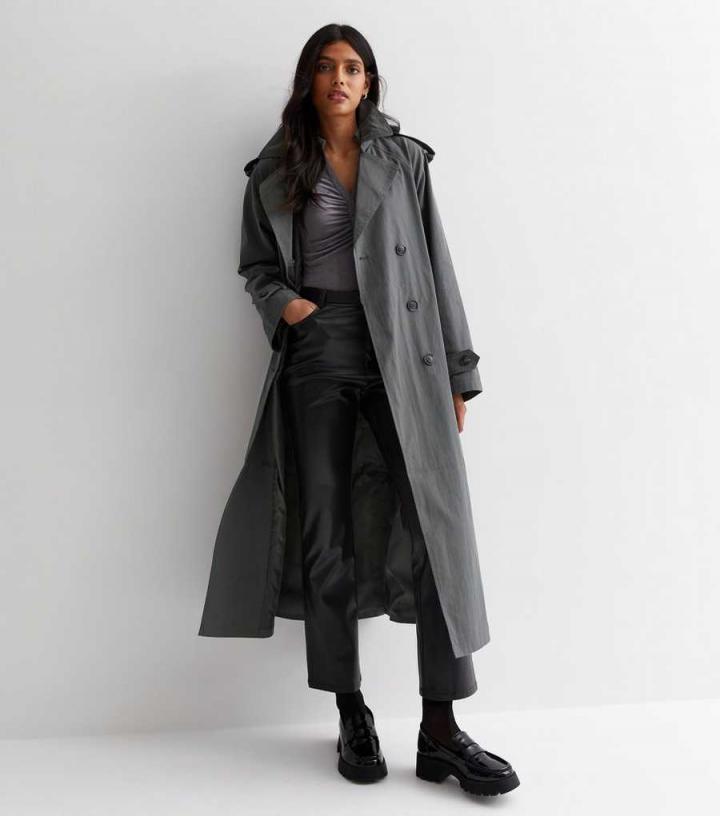 Coats & Jackets | New Look Womens Dark Grey Belted Longline Trench Coat