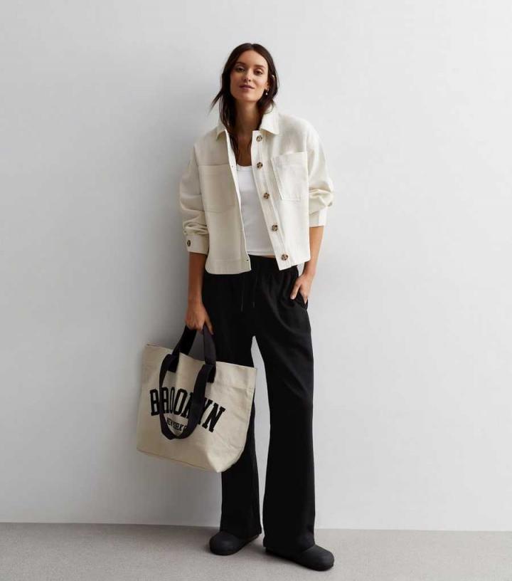 Coats & Jackets | New Look Womens Stone Cotton Pocket Front Crop Shacket