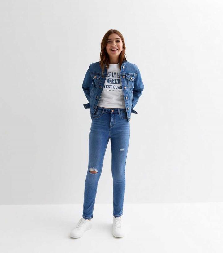 Denim | New Look Girls Blue High Waist Ripped Knee Hallie Skinny Jeans